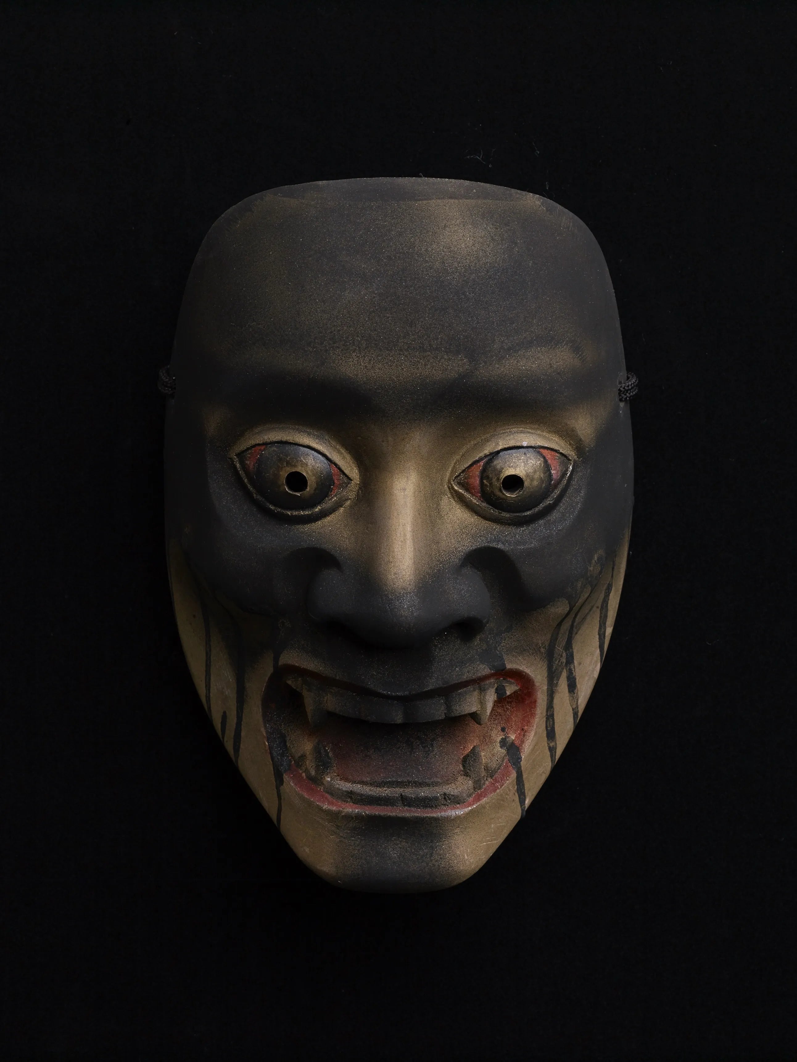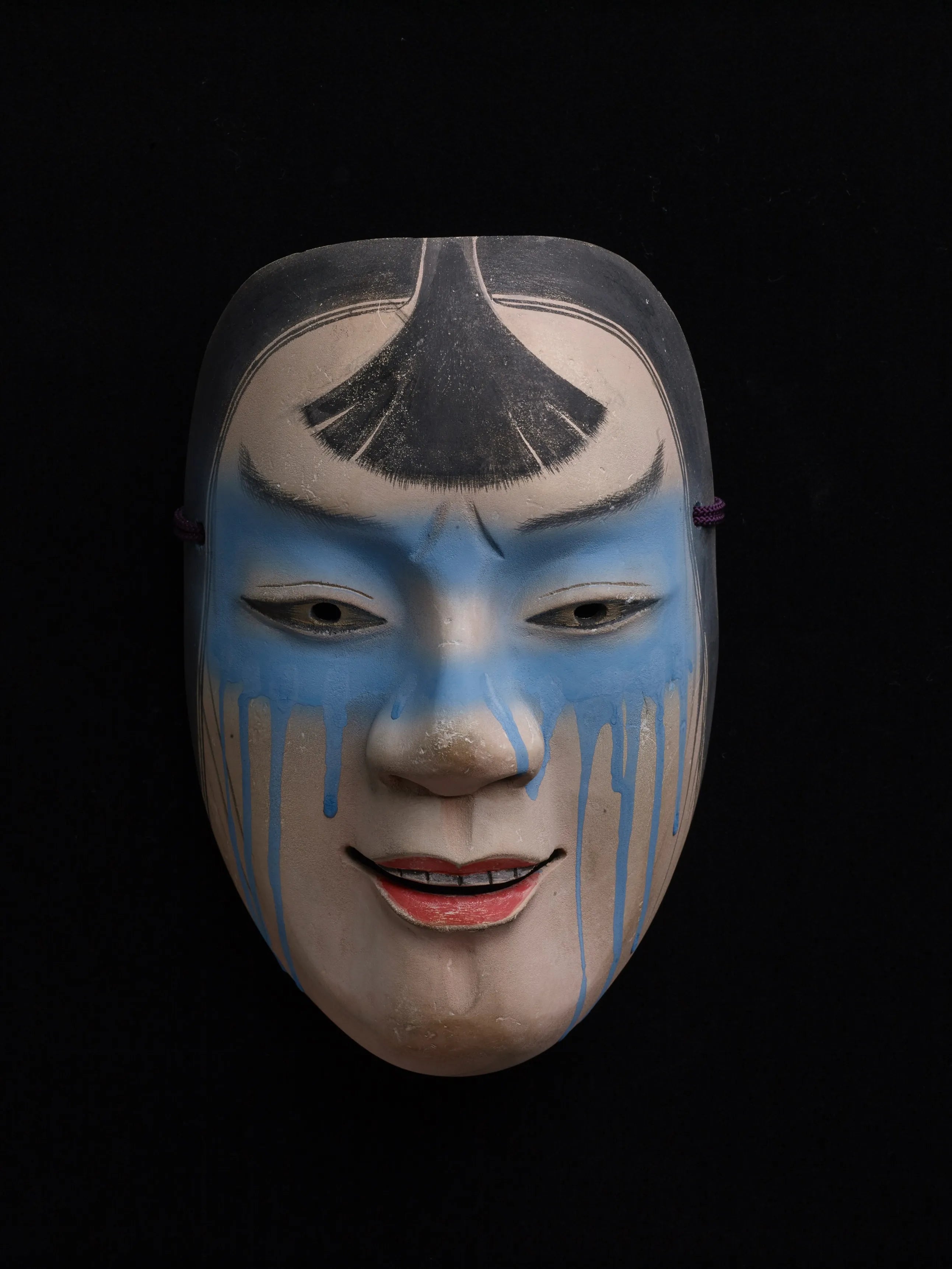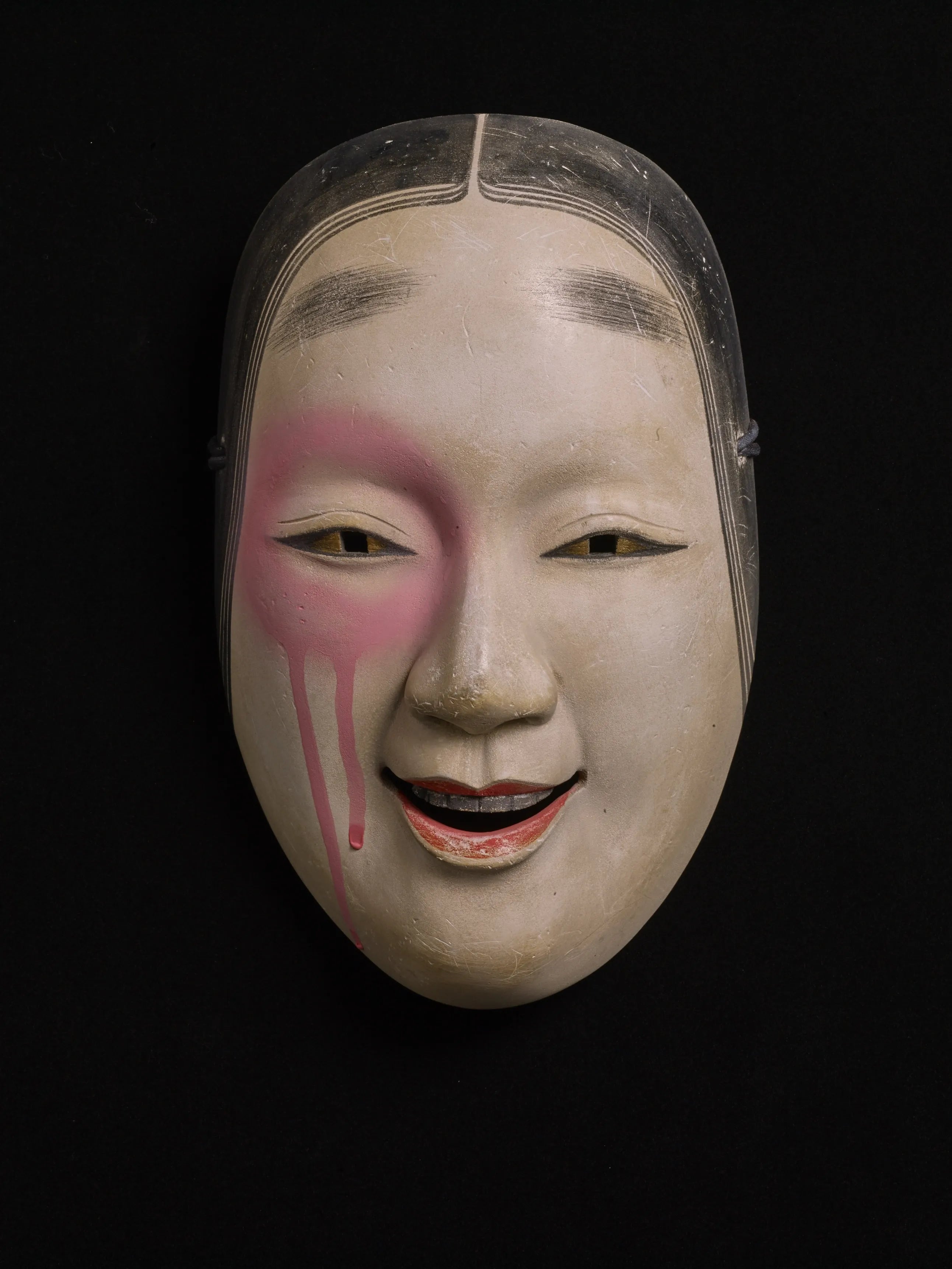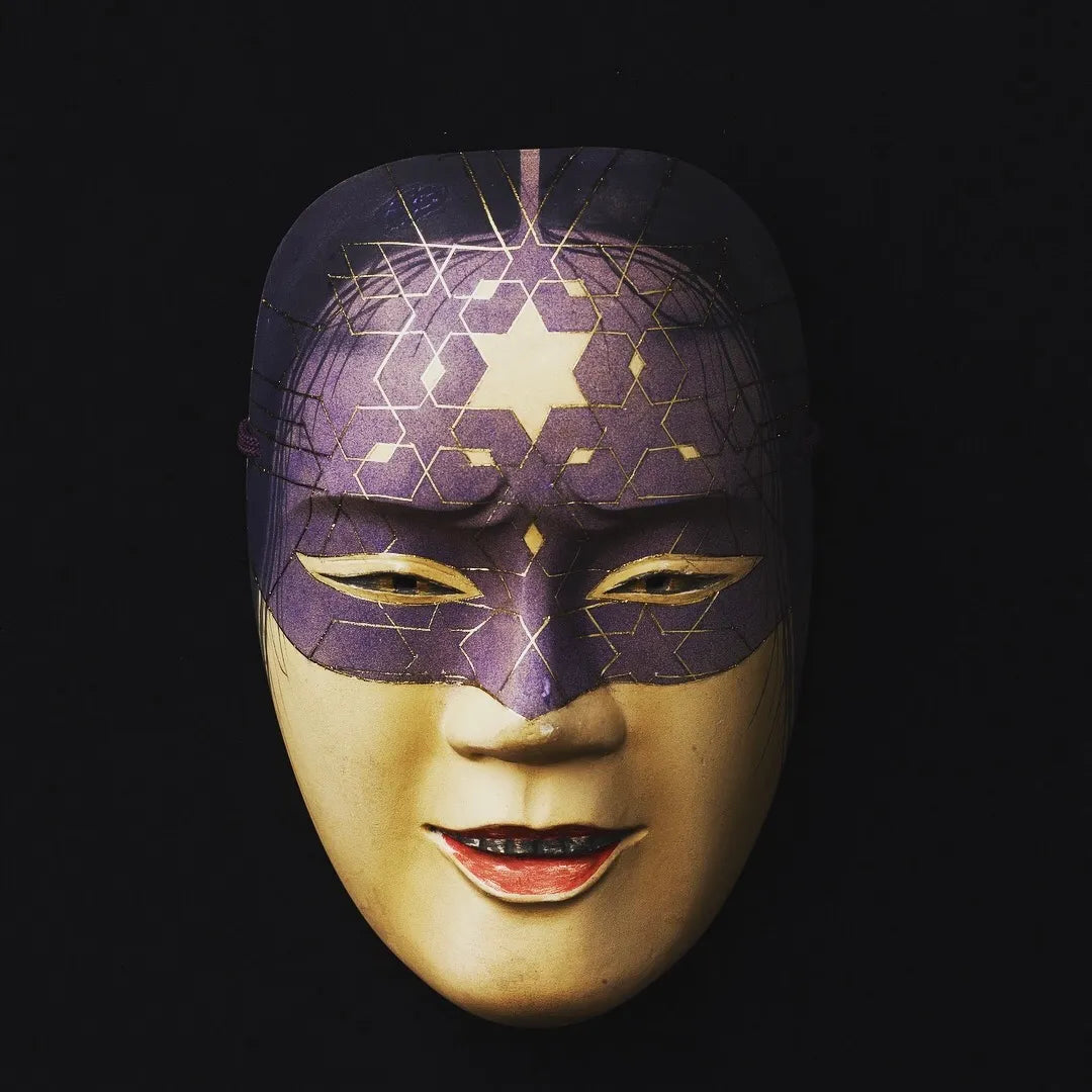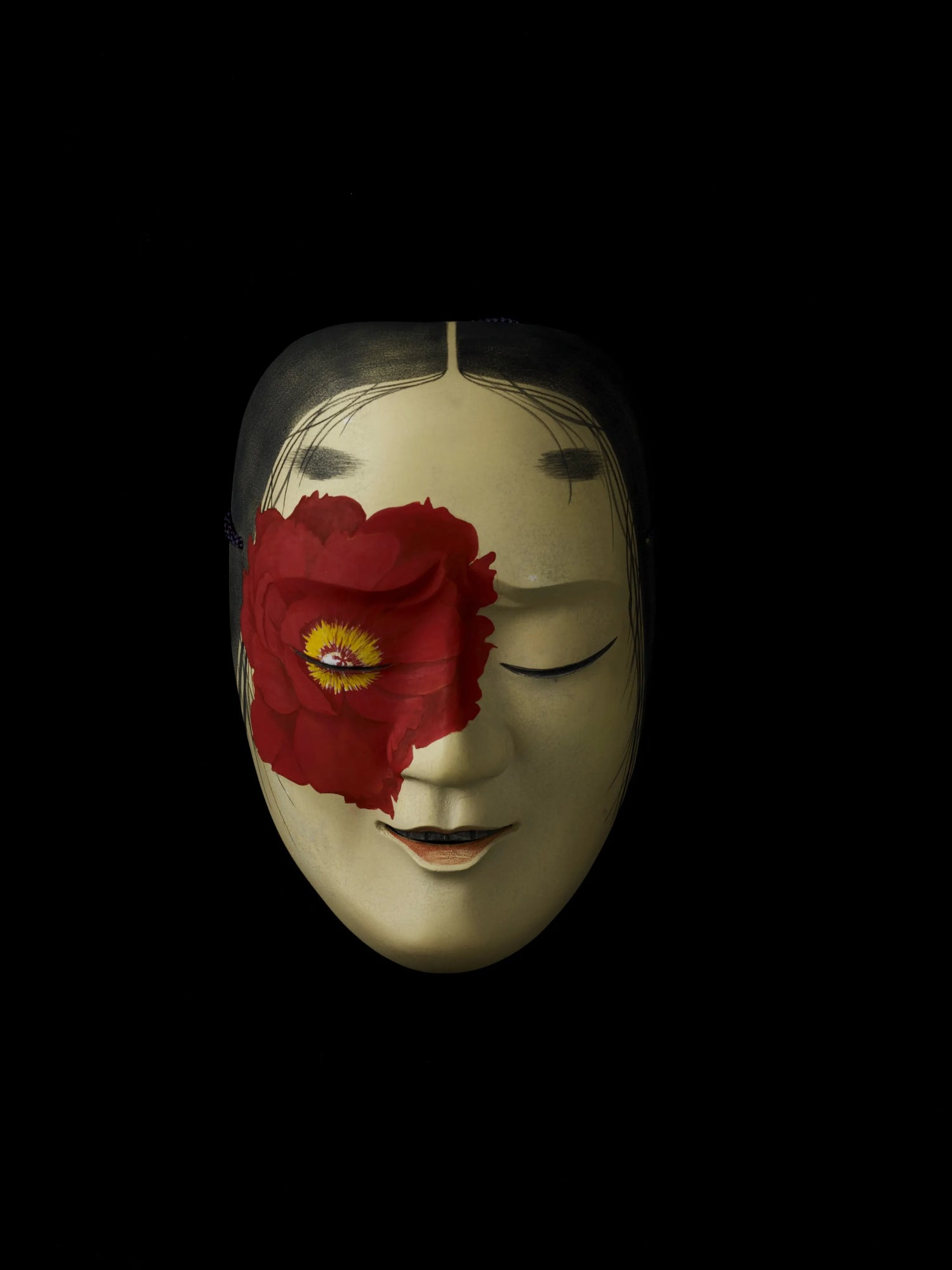 A Noh mask transformed by a blooming flower.A sculptural work where calmness and rupture exist together.